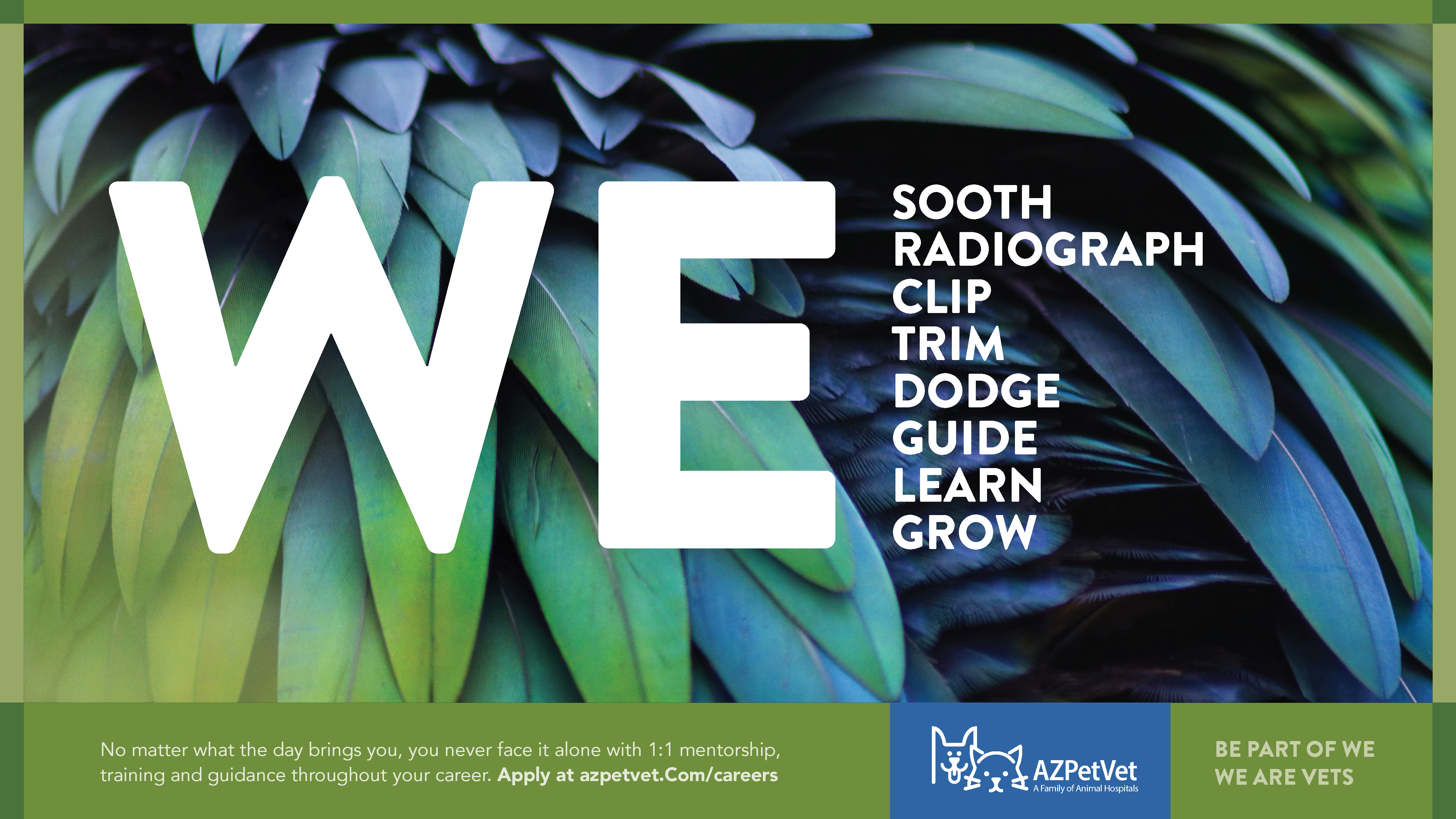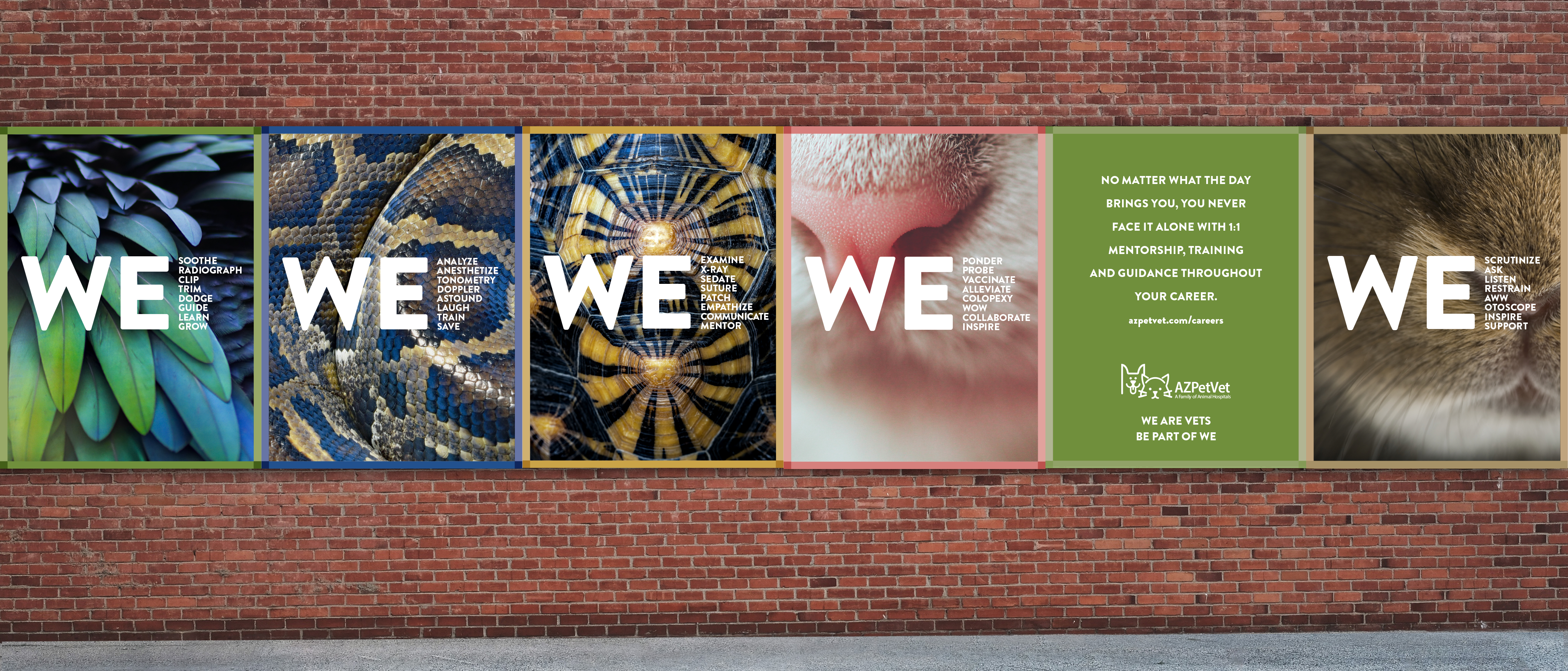 When the agency was tasked with creating a recruitment campaign at veterinary schools for a pitch, I gave life to an existing idea in need of a visual impact. The result was vibrant textures and colors that solified the campaign and became the agency favorite/reco moving forward.